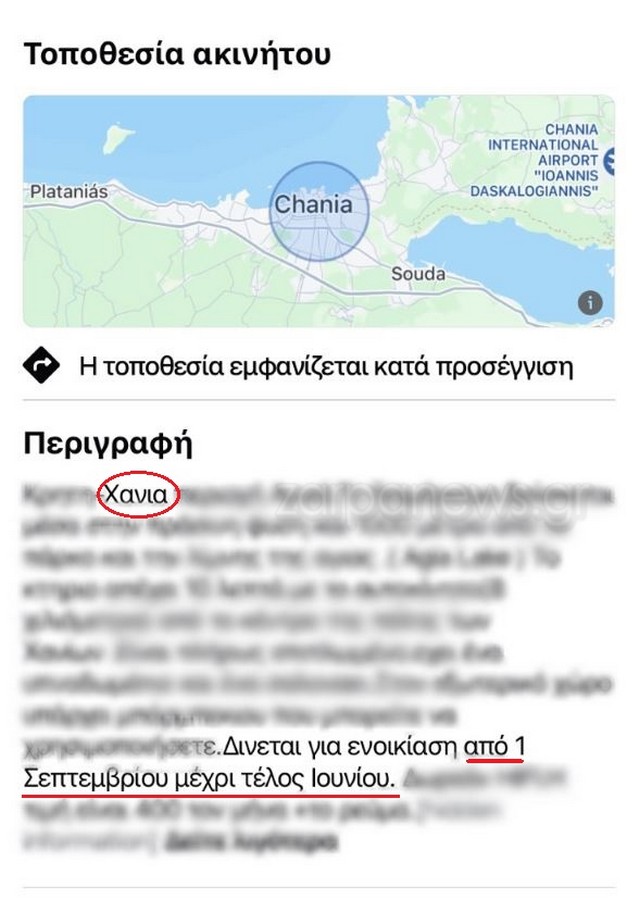 Η απόγνωση μάλιστα κάποιων να βρουν μία μόνιμη κατοικία στον νομό, τους κάνει να δίνουν προκαταβολές σε αγγελίες «μαϊμού». Τελευταίο περιστατικό απάτης, ήταν μια γυναίκα από τα Χανιά. Στην προσπάθειά της να προχωρήσει σε ενοικίαση σπιτιού στην περιοχή του Πλατανιά. Το θύμα μπήκε σε γνωστή πλατφόρμα αγγελιών προκειμένου να ψάξει για σπίτι. Αφού βρήκε το διαμέρισμα που της άρεσε και θα στέγαζε μέσα τη ζωή της, συνομίλησε τηλεφωνικά με την ιδιοκτήτρια η οποία την έπεισε να της καταβάλει μέσω τραπέζης το ποσό των 1450 ευρώ ως προκαταβολή.